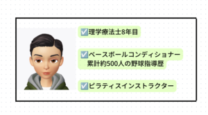 国家資格理学療法士として病院に8年勤務。野球少年を主に担当し累計1000人程の野球選手を指導しています。