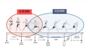 こちらの画像はどのタイミングが並進運動なのか。どのタイミングが回旋運動なのかを示しています。